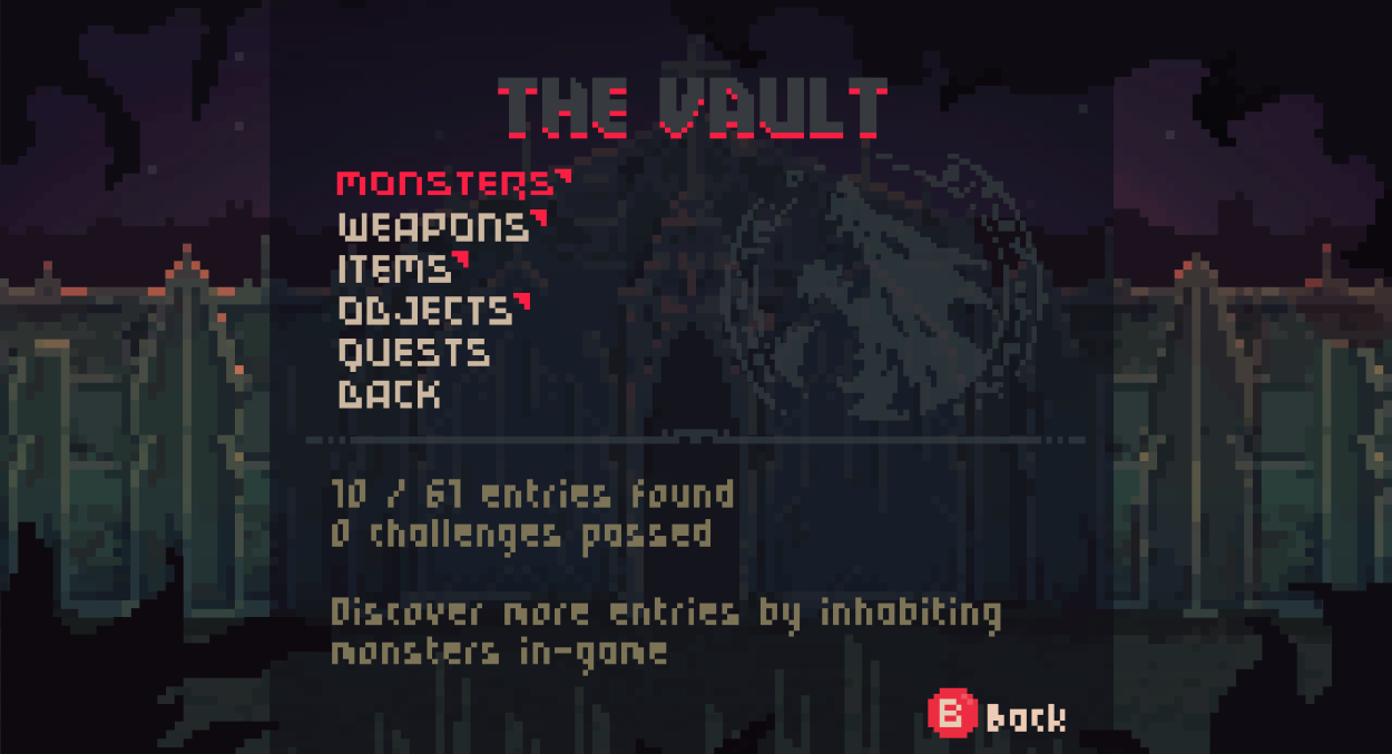 The bestiary is the screen where you can learn about each element of the game, the selectable monsters